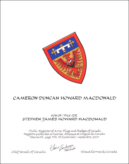 Concession d’armoiries, avec brisures à Cameron Duncan Howard Macdonald