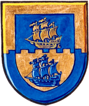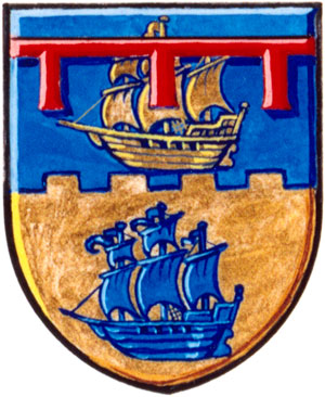 Armoiries d'Alan David RoweBlasonCoupé-crénelé d'azur sur or à deux nefs voguant à pleines voiles de l'un à l'autre; SymbolismeNon disponible. |
