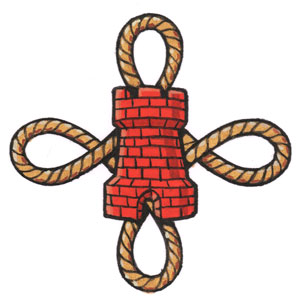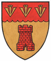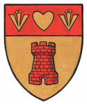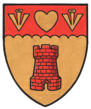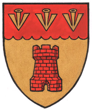 Armoiries d'Alfred John Gardyne Drummond De ChastelainBlasonD’or à une tour de gueules, au chef du même chargé de trois fers de flèche d’or, les pointes en pointe; SymbolismeLa tour figure dans des armoiries utilisées par le père du général de Chastelain et se retrouve dans diverses armes européennes de personnes aux noms semblables. Elle fait écho au nom de famille (« châtelain » en français moderne). Le rouge est la couleur de l’armée canadienne. Les pointes de flèche font référence à la carrière militaire du général de Chastelain;on en retrouve aussi dans les armes de familles Walsh, le nom de sa mère. |