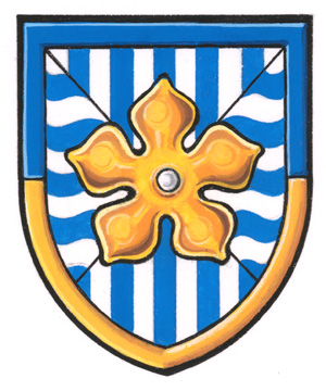 Armoiries de Sophie Robichaud LothianBlasonÉcartelé en sautoir aux 1 et 4 d’argent semé de vergettes d’azur, aux 2 et 3 d’argent semé de burèles ondées d’azur, à une quintefeuille d’or en abîme percée d’argent; SymbolismeLe bleu et le blanc ainsi que les bandes ondulées symbolisent l’eau et les passages de la vie. Pour la Dre Robichaud, l’eau rappelle aussi la traversée de l’océan par ses ancêtres pour venir s’établir au Canada. Les pétales de la fleur stylisée désignent ses cinq enfants et la perle blanche en son centre est symbole de sagesse. Le motif en forme de croix souligne l’importance de la foi catholique dans sa famille. |