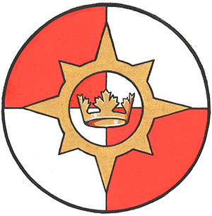 Insigne du 1er vice-président de La Société royale héraldique du CanadaBlason(1er vice-président) Un tourteau écartelé de gueules et d’argent chargé de l’insigne de La Société royale héraldique du Canada, le tout enclos dans une bordure d’or; Symbolisme(1er vice-président) La bordure est une brisure héraldique. |