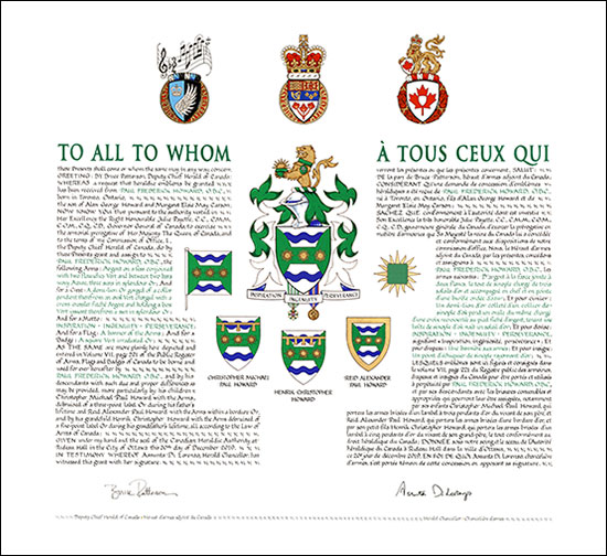 Concession d’armoiries, d’un drapeau et d’un insigne, avec brisures à Christopher Michael Paul Howard, à Reid Alexander Paul Howard et à Henrik Christopher Howard