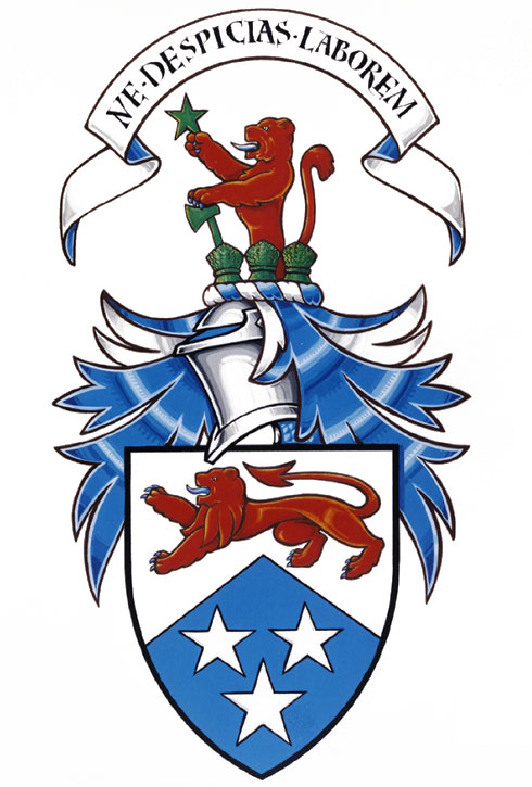 DeviseBlasonNE DESPICIAS LABOREM; SymbolismeUne maxime latine signifiant « Ne méprise pas le travail ». Elle reflète l’éthique du travail de M. Mackie et rappelle la devise des Mackie of Larg (labora) et celle de son cousin le capitaine R.B. Mackie (concedre sperno). La devise figure au-dessus du cimier selon l’usage écossais. |