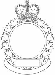 Encadrement d'insigne pour les bases et stations des Forces armées canadiennesBlasonUn annelet d’or sommé de la couronne royale au naturel, environné d’une guirlande de feuilles d’érable d’or, à la billette de [couleur] brochante en pointe posée en fasce lisérée et inscrite de la désignation géographique le tout d’or, accompagné en pointe d’un listel du même inscrit de la devise en lettres de sable; SymbolismeLa plupart des insignes des Forces armées canadiennes sont contenus dans un encadrement d'insigne servant à identifier rapidement le type d’unité et ses fonctions. Le présent encadrement d'insigne accompagne des insignes primaires. |