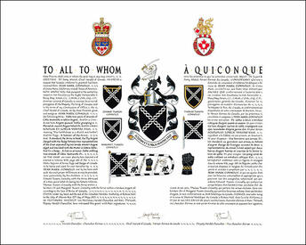 Concession d’armoiries, de drapeaux et d’un insigne, avec brisures à Edward Tuason Connolly, à Thomas Tuason Connolly et à Margaret Tuason Connolly