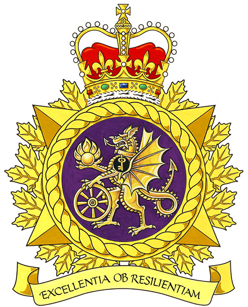Informations additionnellesCréateur(s)Concept original de Manon Labelle, héraut Miramichi, assistée par les hérauts de l’Autorité héraldique du Canada. Artiste-peintreEva Pilar-Cass CalligrapheShirley Mangione Type de récipiendaireInstitution militaire Autres renseignementsCet emblème entouré d'un encadrement d'insigne différent a précédemment été consigné dans le Registre public des armoiries, drapeaux et insignes du Canada, volume VI, page 246, le 15 juillet 2013. |