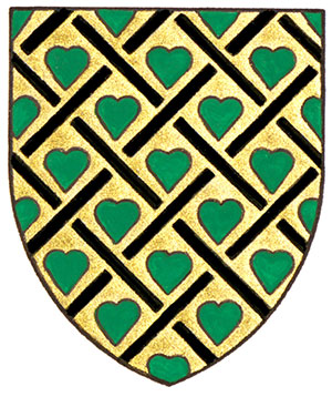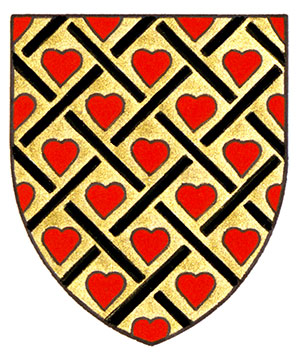 Armoiries de Martyne Marie Gisèle HuotBlasonD’or fretté de sable semé de cœurs d’azur; SymbolismeLe doré représente l’excellence et la persévérance qui ont permis à Mme Huot d’atteindre ses objectifs dans la vie. Le treillis illustre les liens étroits qui unissent sa famille, ainsi que les différents parcours qu’a pris sa carrière. Telles des lacets de chaussons, les bandes entrelacées évoquent également le ballet, activité qu’elle a longtemps pratiquée. Les cœurs représentent son amour pour ses enfants. |