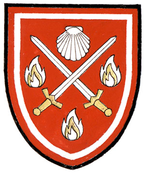 Armoiries de Bernard Ludwig NehringBlasonDe gueules à deux épées d’argent garnies d’or passées en sautoir, accompagnées en chef d’une coquille d’argent et en pointe et dans chaque flanc d’une flamme du même embellie d’or; SymbolismeLe rouge symbolise l’Armée canadienne, où a servi le lieutenant-colonel Nehring, et à laquelle les épées font également référence. Le coquillage s’inspire de l’insigne du Lincoln and Welland Regiment, dont il a été le commandant. Les flammes représentent l’éclairage de l’apprentissage et des connaissances, ainsi que la passion qu’il éprouve pour son service et pour ses activités de conférencier et d’écrivain sur l’histoire militaire. Elles représentent également ses trois enfants. |