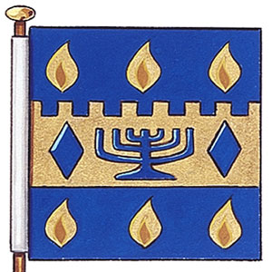 DeviseBlason(en hébreu); SymbolismeCette sentence hébraïque, Hadar, Tagar, Shalom, signifie « Dignité, ténacité et paix ». |