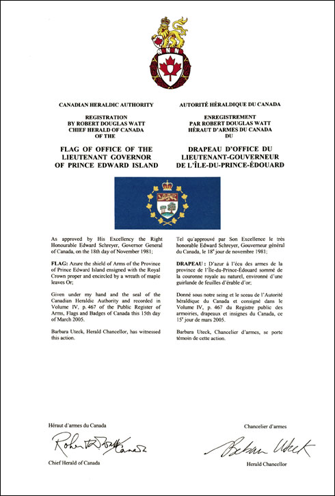 L'utilisation du contenu du Registre public est réservée à des fins de recherche uniquement. Les emblèmes héraldiques du Registre ne peuvent être reproduits sous aucune forme ou par quelque procédé que ce soit sans l'autorisation écrite de l'Autorité héraldique du Canada et/ou du récipiendaire.