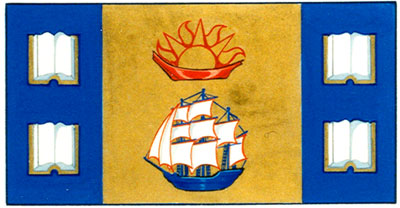 Drapeau du Malaspina University-CollegeBlasonD'azur au pal canadien d'or chargé en chef d'un soleil d'or bordé de gueules mouvant d'un canot des Salishs du même et en pointe d'une représentation d'une corbeta espagnole comme dans les armes, le pal accosté de quatre livres ouverts d'argent reliés d'or posés en pal; SymbolismeLe symbolisme de cet emblème est compris dans un ou plusieurs éléments de ce dossier. |