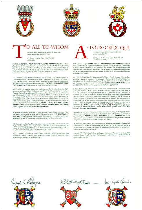 L'utilisation du contenu du Registre public est réservée à des fins de recherche uniquement. Les emblèmes héraldiques du Registre ne peuvent être reproduits sous aucune forme ou par quelque procédé que ce soit sans l'autorisation écrite de l'Autorité héraldique du Canada et/ou du récipiendaire.