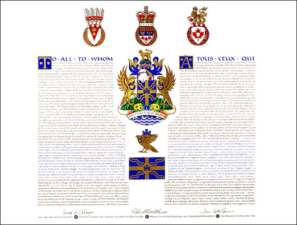 Concession d’armoiries, de supports, d’un drapeau et d’un insigne