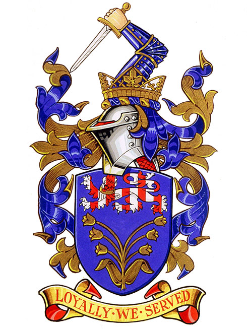 DeviseBlasonLOYALLY WE SERVED, signifiant « Nous avons servi avec loyauté »; |