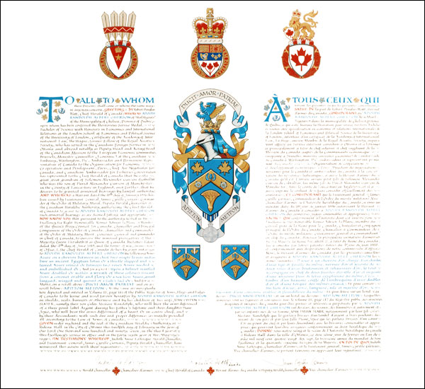 Informations additionnellesCréateur(s)Concept original de Robert D. Watt, héraut d'armes du Canada, assisté par les hérauts de l'Autorité héraldique du Canada. Artiste-peintreRobert Létourneau CalligrapheJudith Bainbridge Type de récipiendaireIndividuel |