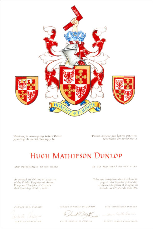 Concession d’armoiries, avec brisures à Lloyd Ralph Dunlop et à Gary George Dunlop