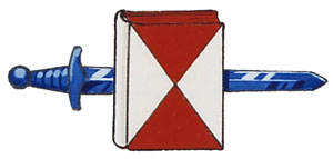 Insigne de Gary Harold RiceBlasonUne épée d'azur en fasce, la garde à dextre, au livre fermé écartelé en sautoir de gueules et d'argent brochant; SymbolismeL'insigne souligne la carrière d'officier militaire du colonel Rice et ses réalisations comme auteur. On y trouve une référence à l'Écosse (où naquirent ses arrière-grands-parents) et aussi à la Nouvelle-Écosse (où naquit Mme Rice). En effet, la division en diagonale rappelle le sautoir des drapeaux de la Nouvelle-Écosse et de l'Écosse. |