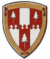 CimierBlasonUn dragon de gueules colleté d'un collier de roses d'argent, tenant de sa serre dextre une épée d'azur et de sa serre senestre une hache à double tranchant du même, naissant d'une couronne de feuilles d'érable et d'étoiles, le tout d'argent; SymbolismeLa couronne souligne la double nationalité canadienne et américaine du colonel Rice. Le dragon, emblème historique du pays de Galles, représente ici la patrie d'origine des Rhys, ancêtres paternels du colonel Rice. Les roses dénotent qu'une partie de ses ancêtres provenaient de l'Angleterre. L'épée représente la carrière militaire du colonel Rice, alors que la hache symbolise le commerce du bois dans la vallée de l'Outaouais où la famille s'était d'abord établie. |