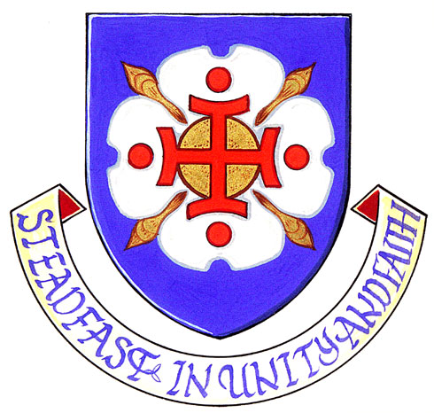 DeviseBlasonSTEADFAST IN UNITY AND FAITH, signifiant « Inébranlable dans l’unité et la foi »; |