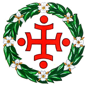 Insigne de la Trinity ChurchBlasonUne croix potencée de gueules aux extrémités courbées vers l'extérieur accompagnées chacune d'un tourteau du même, le tout entouré d'une guirlande composée de feuilles de cornouiller de sinople, de quatre fleurs de cornouiller d'argent, boutonnées et pointées d'or, posées en croix, et de quatre fleurs de trille d'argent, boutonnées et pointées d'or, posées en sautoir; |
