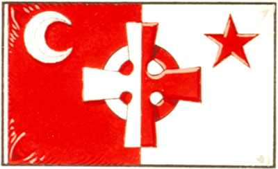 Drapeau de Barry Joseph GabrielBlasonParti de gueules et d'argent à une croix celte de l'un en l'autre, accompagnée au canton dextre du chef d'un croissant contourné et au canton senestre d'une étoile, le tout de l'un en l'autre et de l'un à l'autre; SymbolismeLe symbolisme de cet emblème est compris dans un ou plusieurs éléments de ce dossier. |
