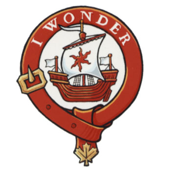 Insigne de Robert Ian MacDonaldBlasonUne nef comme dans le cimier entourée d'une ceinture de gueules bouclée d'or, ornée au bout d'une feuille d'érable du même et portant l'inscription I WONDER en lettres d'argent; SymbolismeLe symbolisme de cet emblème est compris dans un ou plusieurs éléments de ce dossier. |