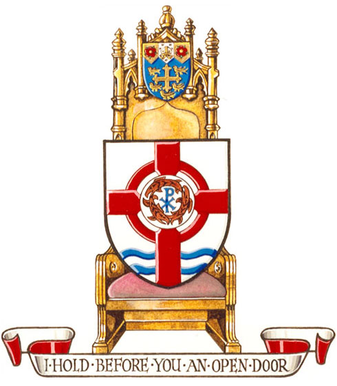 DeviseBlasonI HOLD BEFORE YOU AN OPEN DOOR, signifiant « J’ai placé devant toi une porte ouverte » (Ap 3.8); |