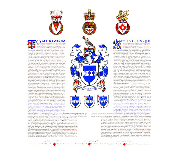 Informations additionnellesCréateur(s)Non disponible Artiste-peintreGordon Macpherson CalligrapheJudith Bainbridge Type de récipiendaireIndividuel Autres renseignementsLes emblèmes du récipiendaire ont été précédemment consignés dans les archives du Collège d’armes, Londres, Angleterre, le 30 mai 1967. |