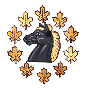 CimierBlasonUne tête de cheval de sable crinée d’or, tenant dans sa bouche une branchette d’érable à trois feuilles du même, mouvante du mâchicoulis d’une tour d’or maçonnée de sable; |