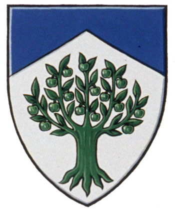 Armoiries brisées de Howard John Crabtree, fils de Peter John CrabtreeBlasonDivisé en chevron haussé d'azur sur argent au pommetier fruité arraché de sinople; SymbolismeLa ligne de partition triangulaire prend l’allure d’une montagne enneigée sous un ciel bleu et représente son enthousiasme pour le ski. |