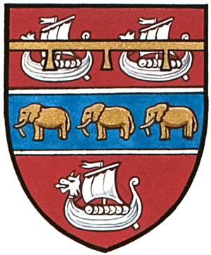 Armoiries de Carl Anders LarsenBlasonDe gueules à la fasce d’azur lisérée d’argent chargée de trois éléphants africains d’or, accompagnée de trois drakkars d’argent; SymbolismeLes couleurs rouge, blanc, bleu et or symbolisent l’héritage culturel danois, suédois et anglais de M. Larsen ainsi que son service à son pays, le Canada. L’héritage scandinave de M. Larsen est souligné par la présence des longs navires vikings, dont le nombre, trois, représente ses trois fils. Les éléphants ont été choisis en l’honneur de son épouse Eurilda car ce sont ses animaux préférés et ils sont présents dans les armoiries municipales de son lieu de naissance, Pietermaritzburg, dans le KwaZulu-Natal en Afrique du Sud. |