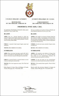 L'utilisation du contenu du Registre public est réservée à des fins de recherche uniquement. Les emblèmes héraldiques du Registre ne peuvent être reproduits sous aucune forme ou par quelque procédé que ce soit sans l'autorisation écrite de l'Autorité héraldique du Canada et/ou du récipiendaire.