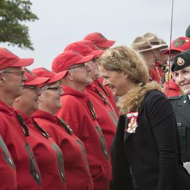 • Durant l'inspection de la garde, la gouverneure générale s'est arrêtée pour remercier les membres pour leur service.