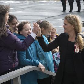 • Par la suite, la gouverneure générale a rencontré des membres du public qui été présents pour regarder la cérémonie d'accueil.