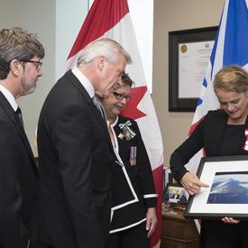 • Par la suite, la gouverneure générale a remis à Son Honneur l’honorable Judy Foote, lieutenante-gouverneure , et l’honorable Dwight Ball, premier ministre de Terre-Neuve-et-Labrador, une photo de la province prise de l'espace.