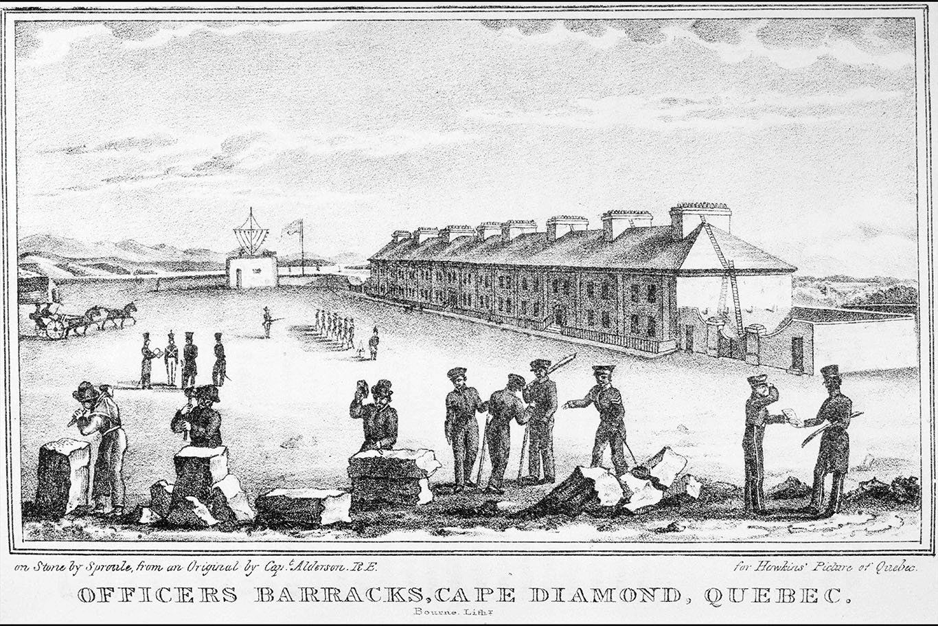 Inspiré du dessin original du capitaine Alderson, gravure, 1834; tiré de Hawkins’s Pictures of Quebec, p. 159.