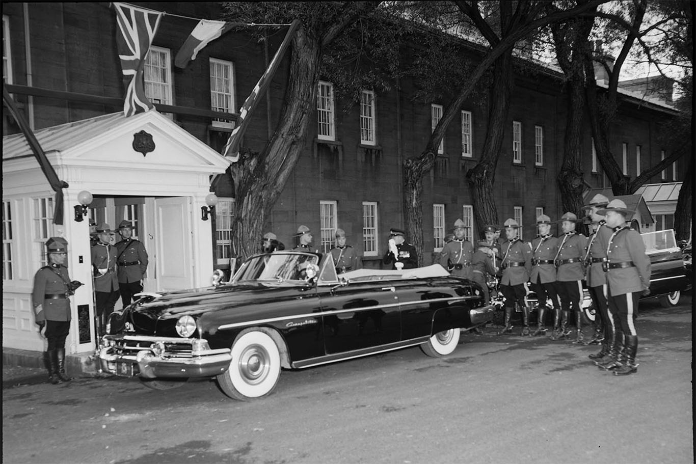 Cette photo montre l’arrivée du cortège royal à la Résidence du gouverneur général à la Citadelle. Au cours de son règne, la reine Elizabeth II reviendra deux fois à la Citadelle, soit en octobre 1964 et en octobre 1987.
