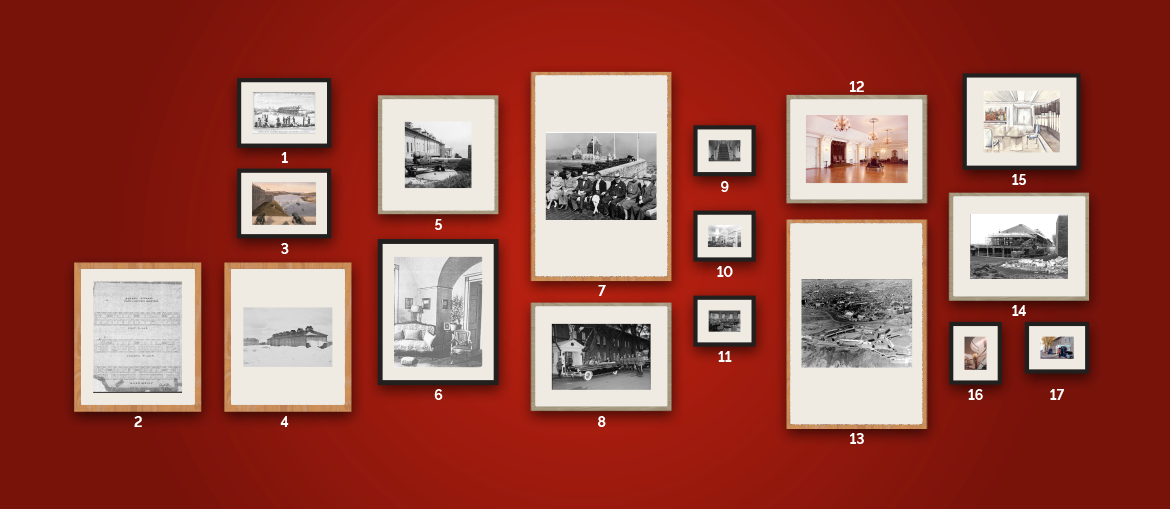 Construite en bois sur l’emplacement des écuries des officiers, dont une partie des murs sert de fondation, la salle de bal se trouve au premier étage de la résidence et communique avec les quartiers privés par le salon du gouverneur général, que l’on aperçoit sur cette photographie de 1929.